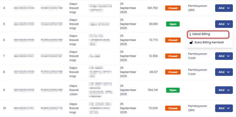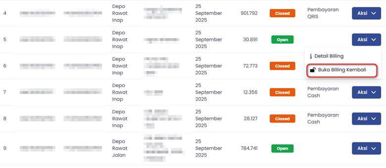 e. Pilih Buka Billing Kembali untuk membuka Billing