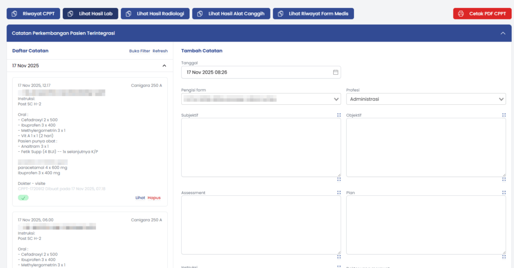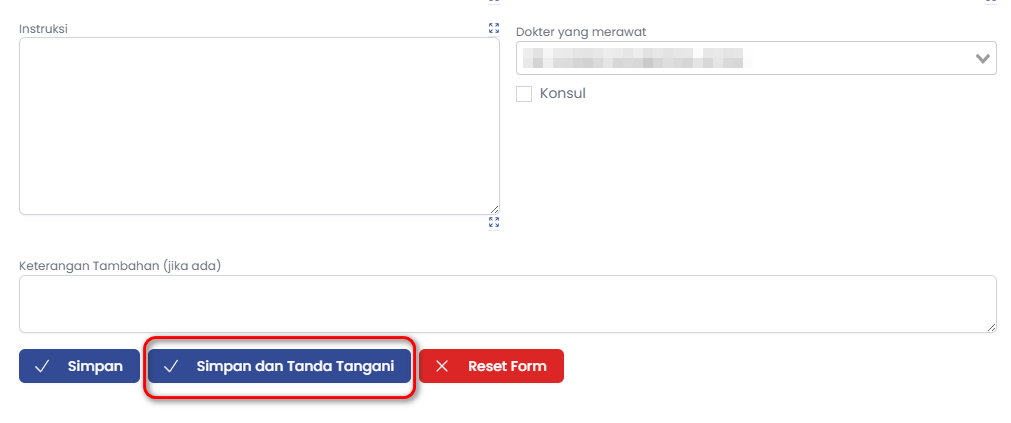 f. Lengkapi form sesuai dengan diagnosa pasien