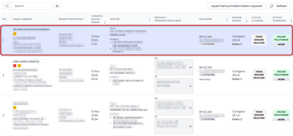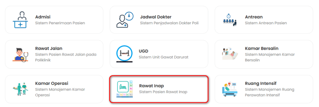 - Pilih menu Rawat Inap pada Dashboard