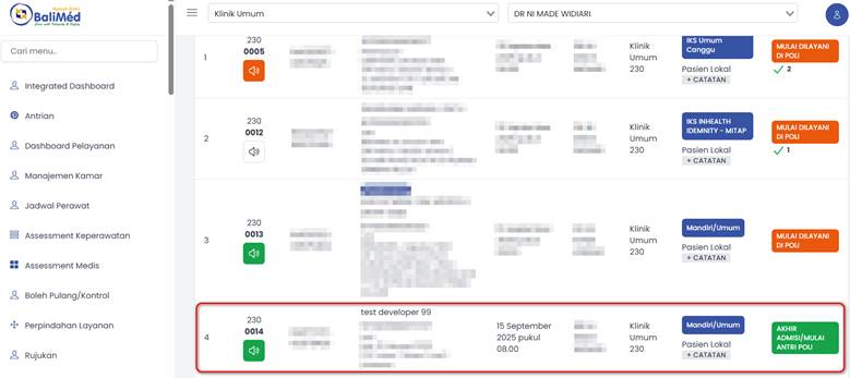 c. Pilih Panggil Pasien