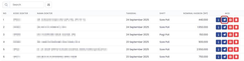 1. Pilih icon ini untuk mengirim Kasbon Dokter