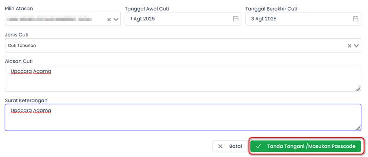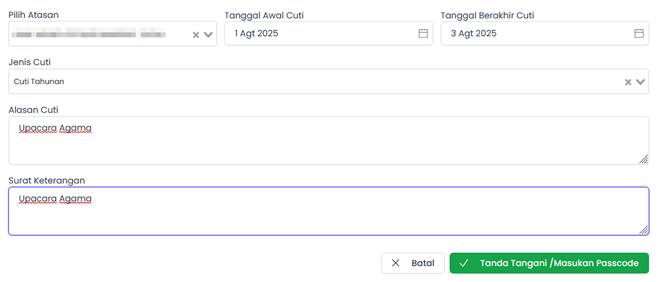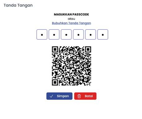 f. Masukkan Passcode atau pilih Bubuhkan Tanda Tangan