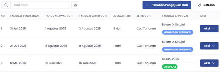 h. Jika sudah berhasil tersimpan, akan muncul status menunggu approval