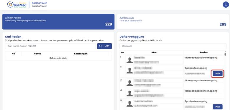 b. Pilih nama pasien yang akan di kirimkan pesan/broadcast