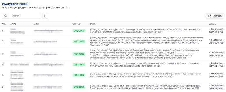 f. Status pengiriman pesan dapat dilihat di Riwayat Notifikasi