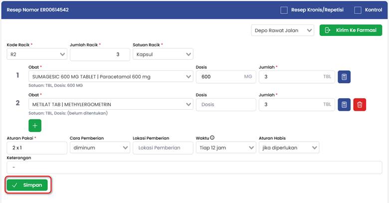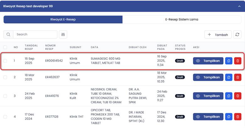h. Jika berhasil tersimpan, data akan muncul pada Riwayat E-Resep