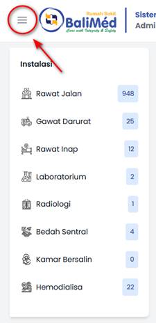 - Masuk ke halaman Dashboard Admisi, lalu klik ikon 3 garis pada sudut kiri atas