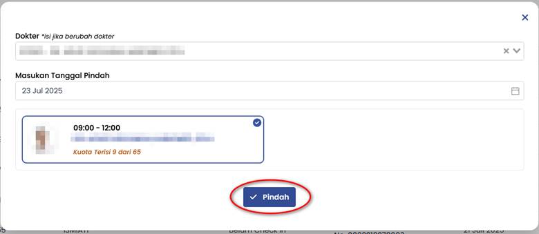 f. Pillih kembali nama dokter spesialis serta tanggal pasien akan dipindahkan kemudian pillin Pindah