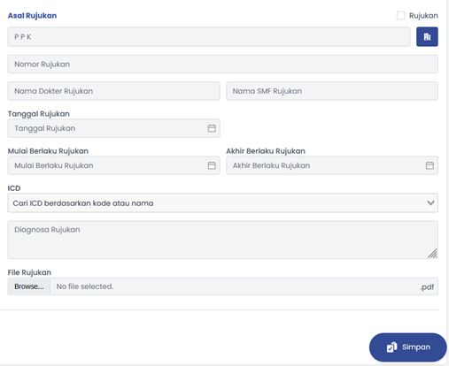 Namun jika pasien sudah memiliki pengantar dari dokter diluar RS Balimed Denpasar, centang keterangan Pasien Luar/Travelling lalu input nama dokter poli umum dan nama dokter luar yang memberikan pengantar tersebut. Jika sudah melengkapi form simpan data tersebut.