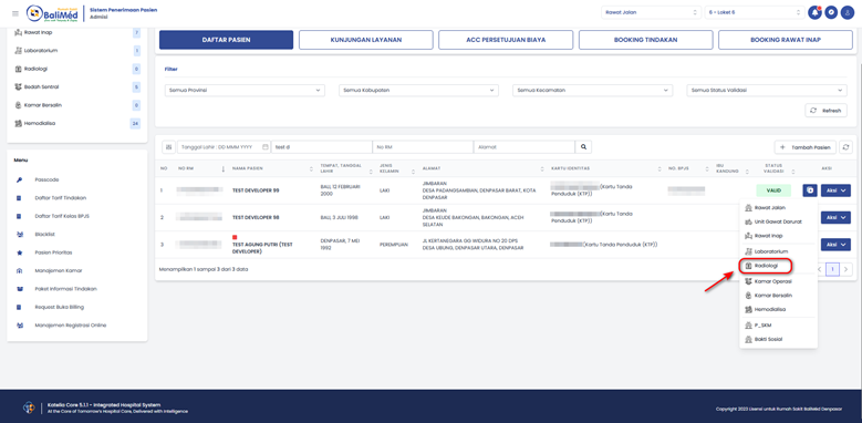 Pertama-tama pilih menu Daftar Pasien pada Dashboard SSO. Kemudian pilih fitur Radiologi. Setelah memilih fitur tersebut akan muncul tampilan sebagai berikut.
