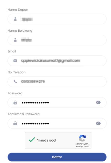 Jika sudah memilih opsi tersebut akan muncul tampilan seperti berikut lalu lengkapi form yang telah disediakan. Setelah melengkapi form pilih opsi Daftar untuk memproses data yang akan disimpan pada sistem.