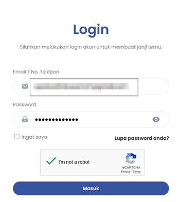 Setelah itu masukkan no telp/Email yang digunakan saat melakukan registrasi sebelumnya dan pilih opsi Masuk.