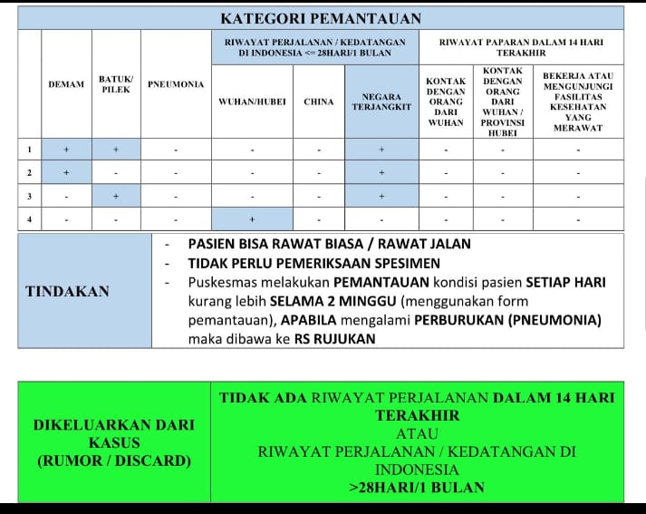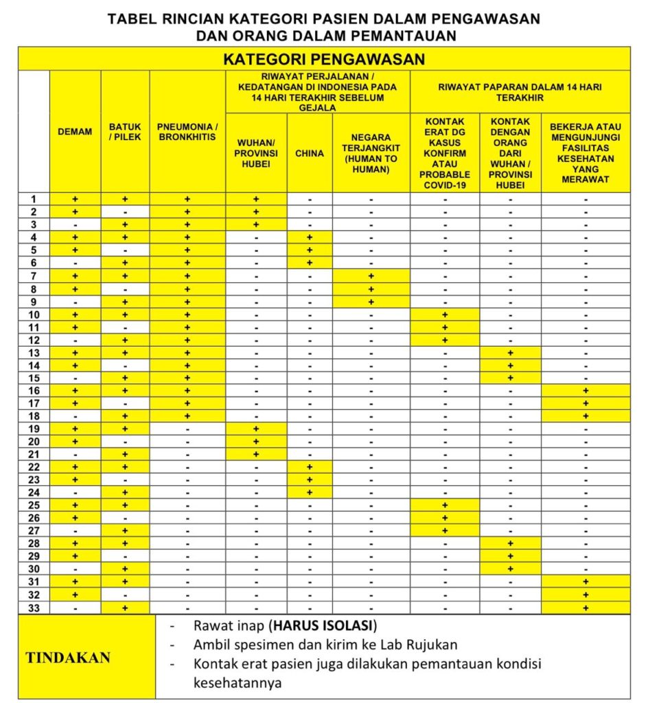 - Kontak : menyentuh area (daerah panemi, RS yang merawat orang terduga covid-19, atau orang terduga terjangkit covid