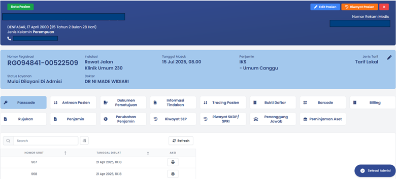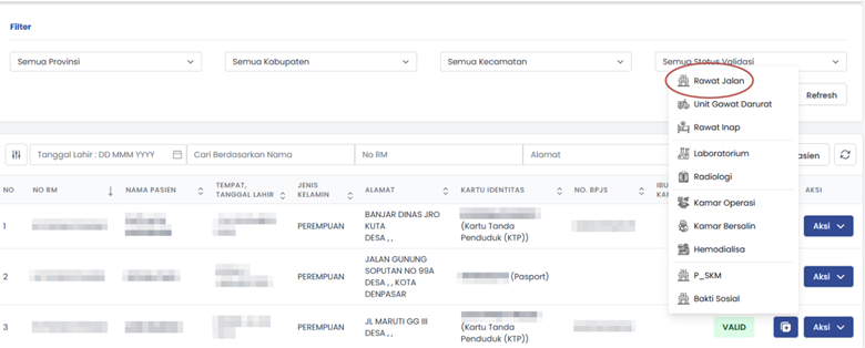 Pertama-tama pilih fitur Rawat Jalan pada Dashboard SSO. Setelah memilih fitur tersebut akan muncul tampilan sebagai berikut.