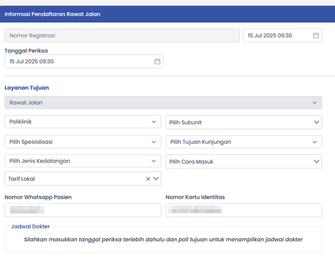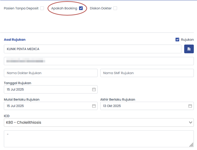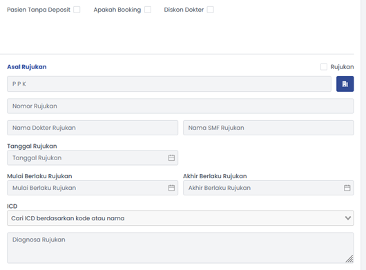 Lengkapi form tersebut sesuai dengan rujukan pasien baik dari Faskes I maupun Faskes II. Kemudian centang keterangan Apakah Booking jika ingin melakukan booking pada hari yang ditentukan.