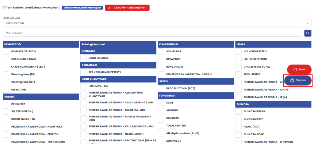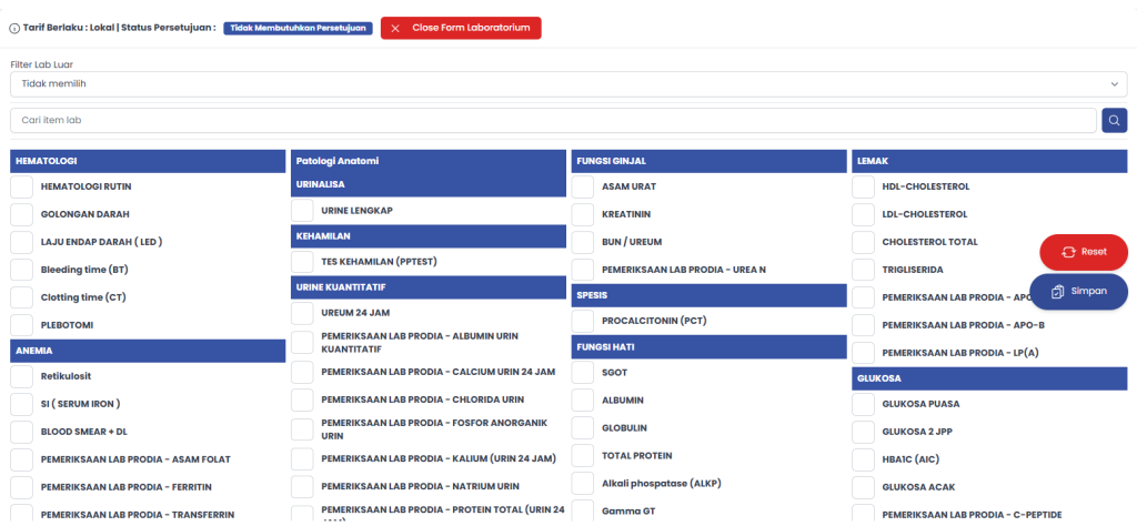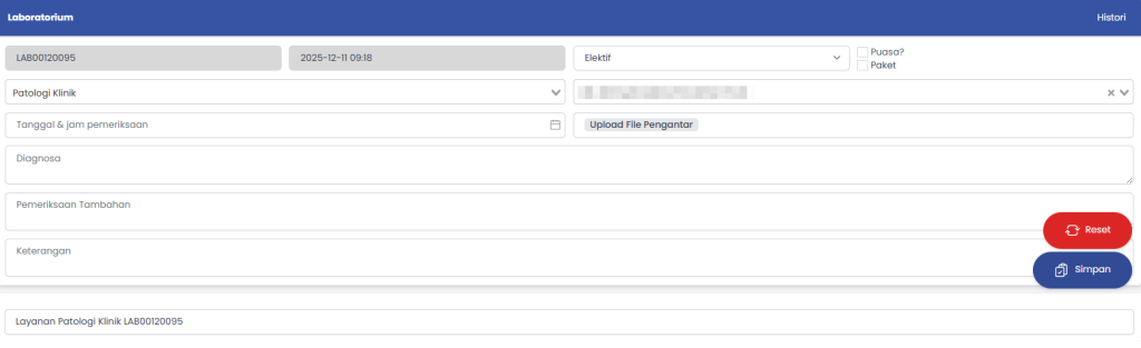 - Pilih Form Laboratorium
