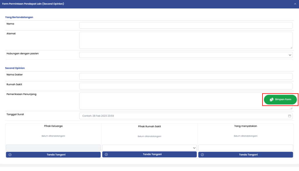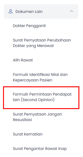 f. Pilih Formulir Permintaan Pendapat Lain (Second Opinion)