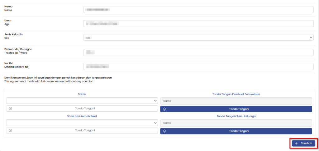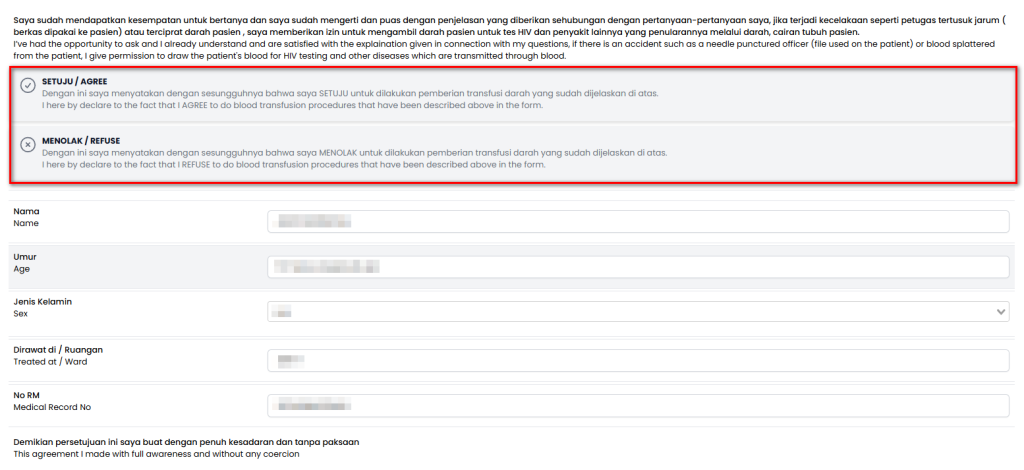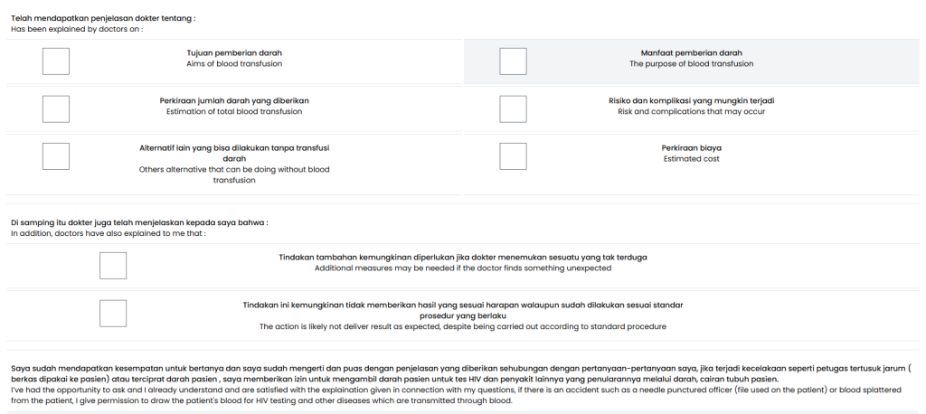 e. Lalu pilih Informed Consent Tranfusi Darah