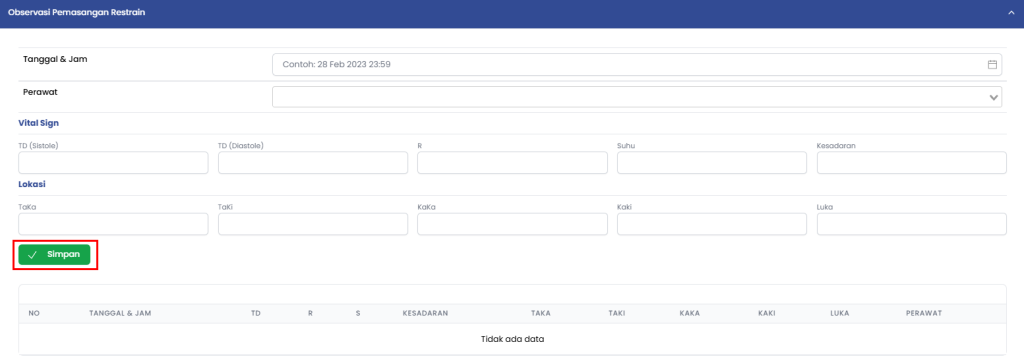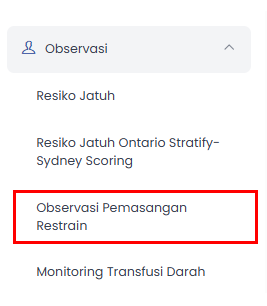 f. Pilih Observasi Pemasangan Restrain
