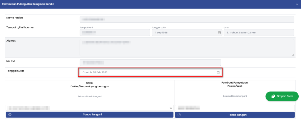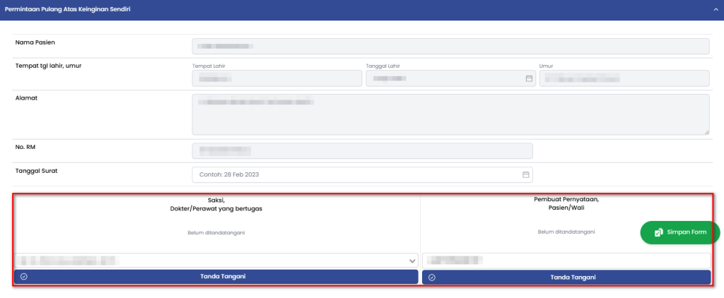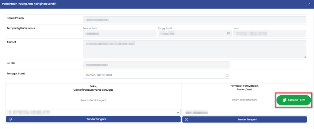f. Pilih Pulang Atas Keinginan Sendiri (Forced Discharge)