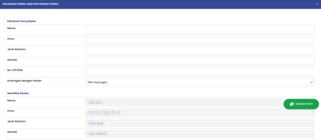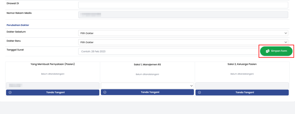 f. Pilih Surat Pernyataan Perubahan Dokter yang Merawat