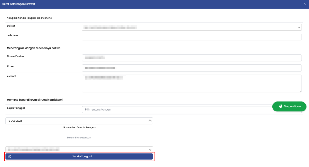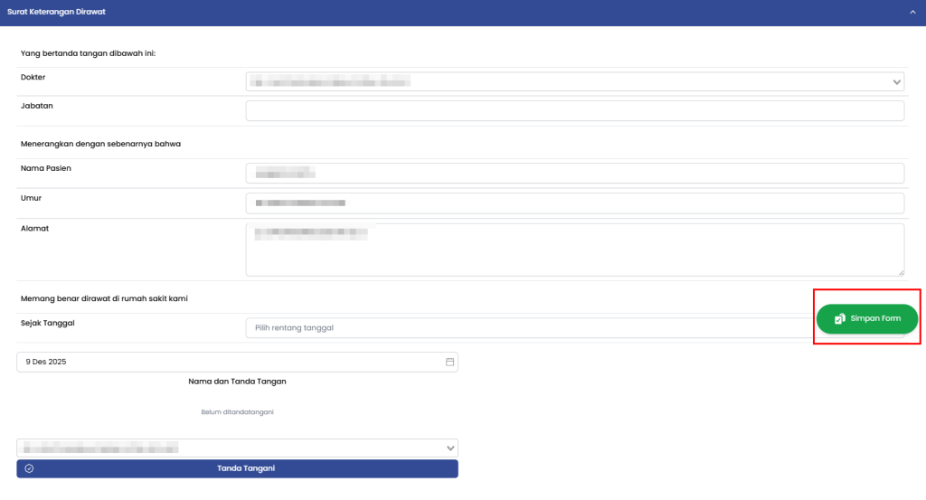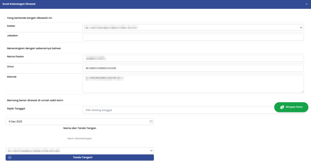 e. Lalu pilih Surat Keterangan Masuk Rumah Sakit