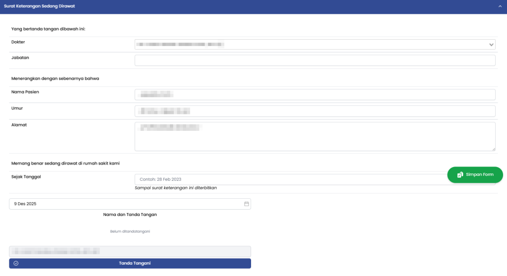 e. Lalu pilih Surat Keterangan Masuk Rumah Sakit
