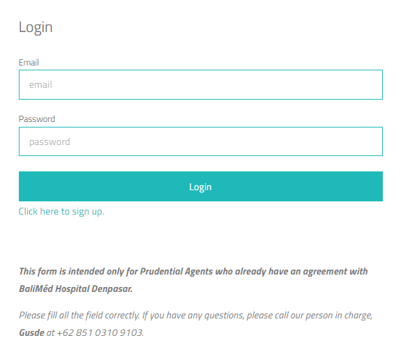Setelah akun di-ativasi, Agent dapat login di https://balimedhospital.co.id/pruref/