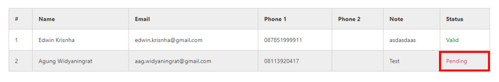 Untuk mem-validasi atau meng-aktivasi akun, klik tulisan Pending.